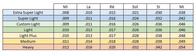 Debelina strun igra ključno vlogo pri oblikovanju zvoka in igralni izkušnji. Tukaj je nekaj debelin strun in njihov vpliv: